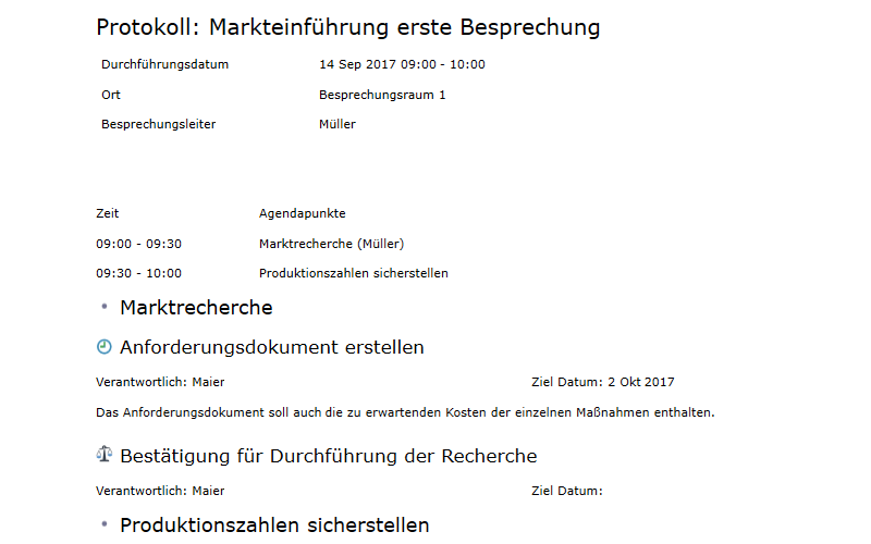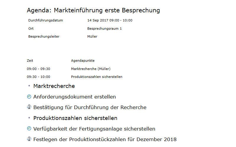 Erstellen Sie einfach und intuitiv die Besprechungs-agenda und senden Sie diese als PDF aus. |