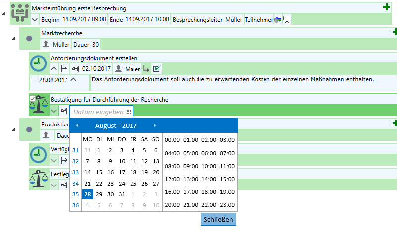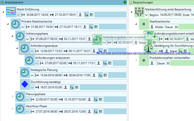 Verbinden Sie Besprechungspunkte einfach per Drag&Drop mit dem Projekt. Halten Sie dadurch alles aktuell und generieren Sie aus den Projektdaten neue Besprechungen. |